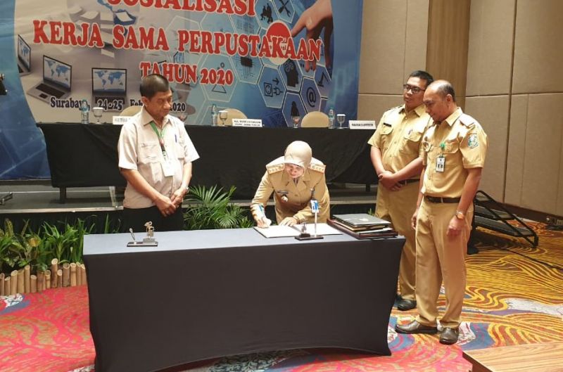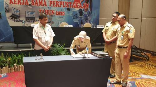 Direktur Politeknik Kesehatan Kemenkes Surabaya menghadiri Sosialisasi Kerja Sama Perpustakaan se-Jawa Timur dan menandatangani naskah Perjanjian Kerja Sama Perpustakaan antara Politeknik Kesehatan Kemenkes Surabaya dengan Dinas Perpustakaan dan Kearsipan Provinsi Jawa Timur bertempat di Hotel Grand Dafam Surabaya Tanggal 24 Pebruari 2020